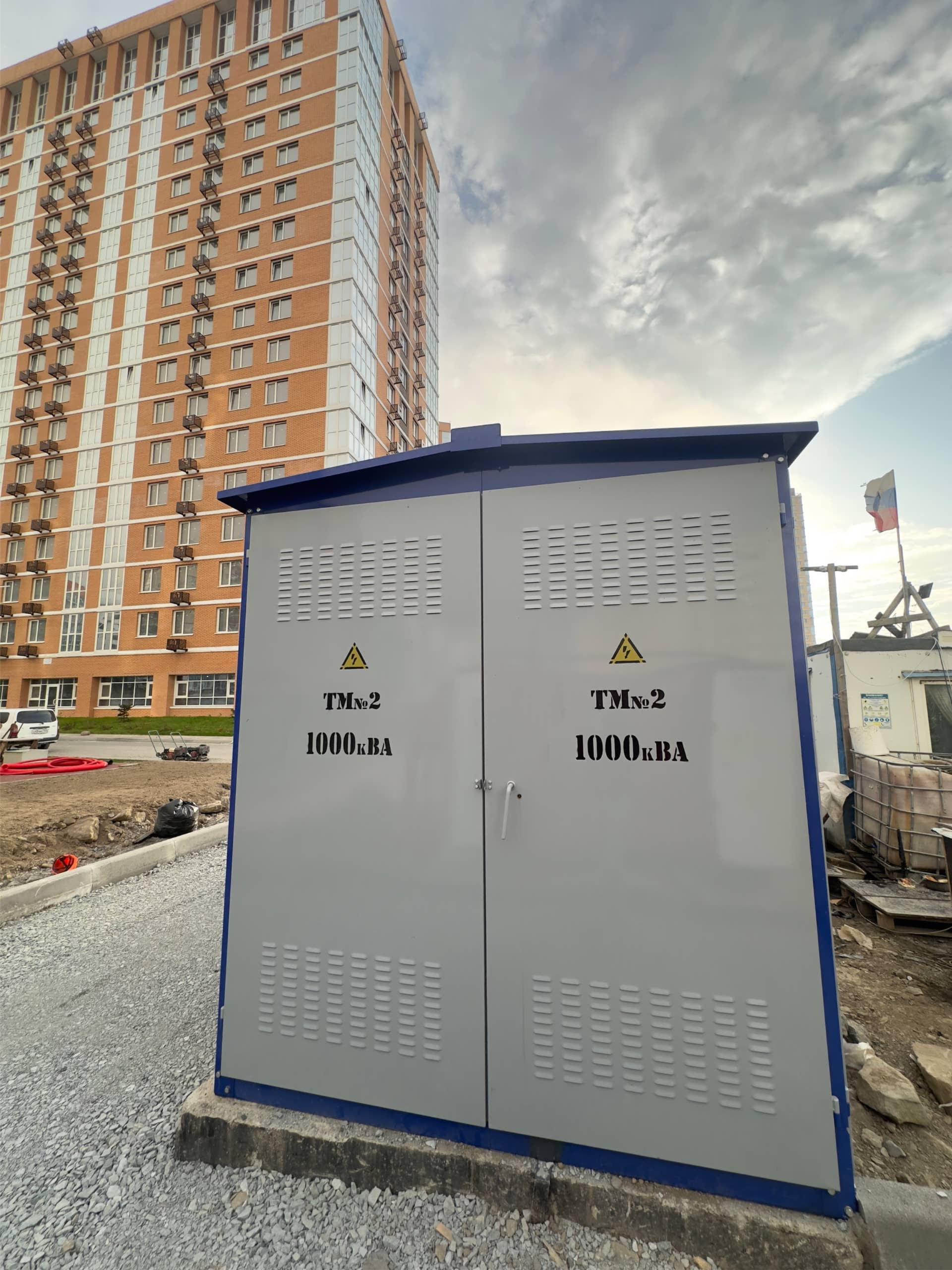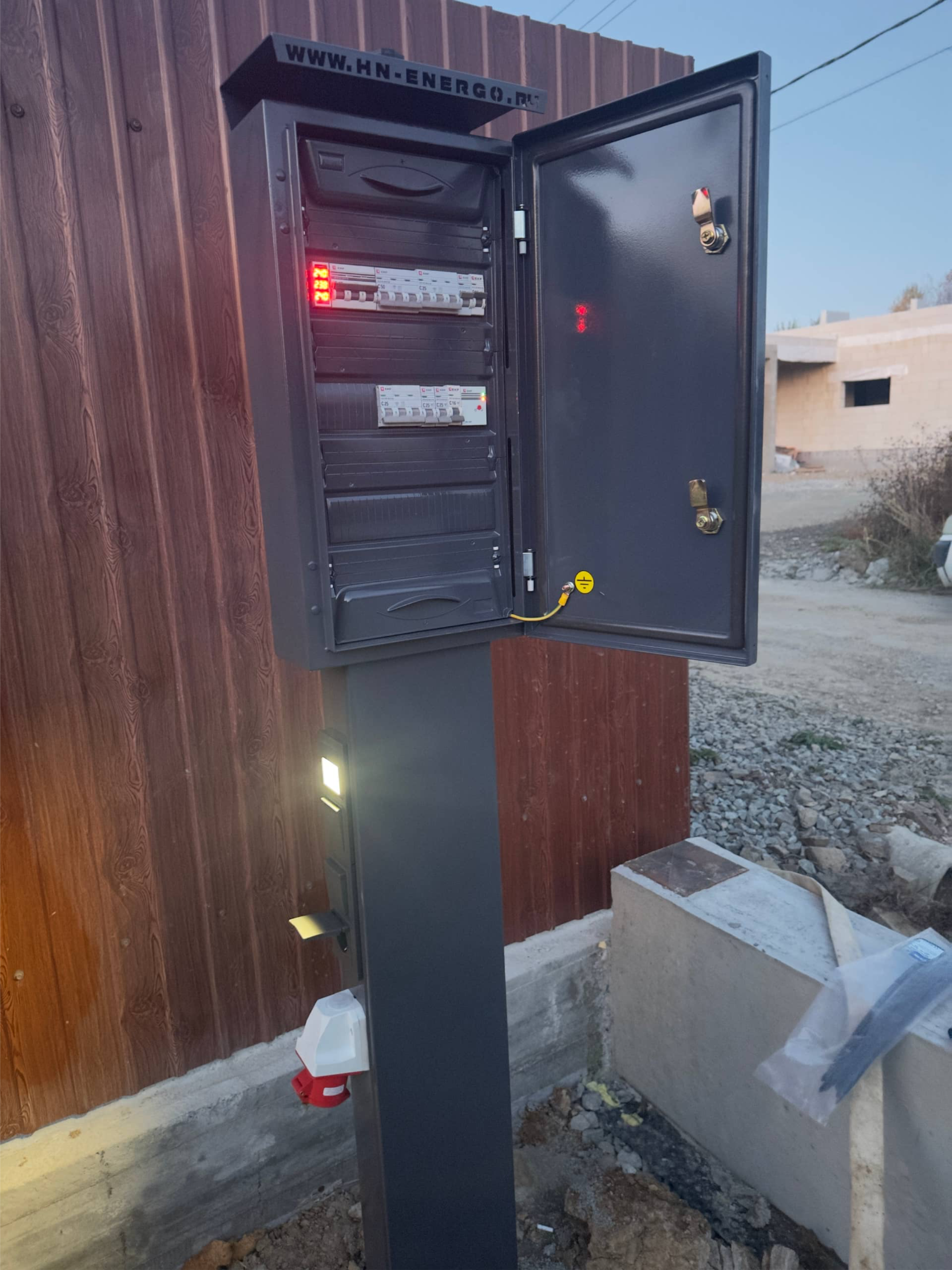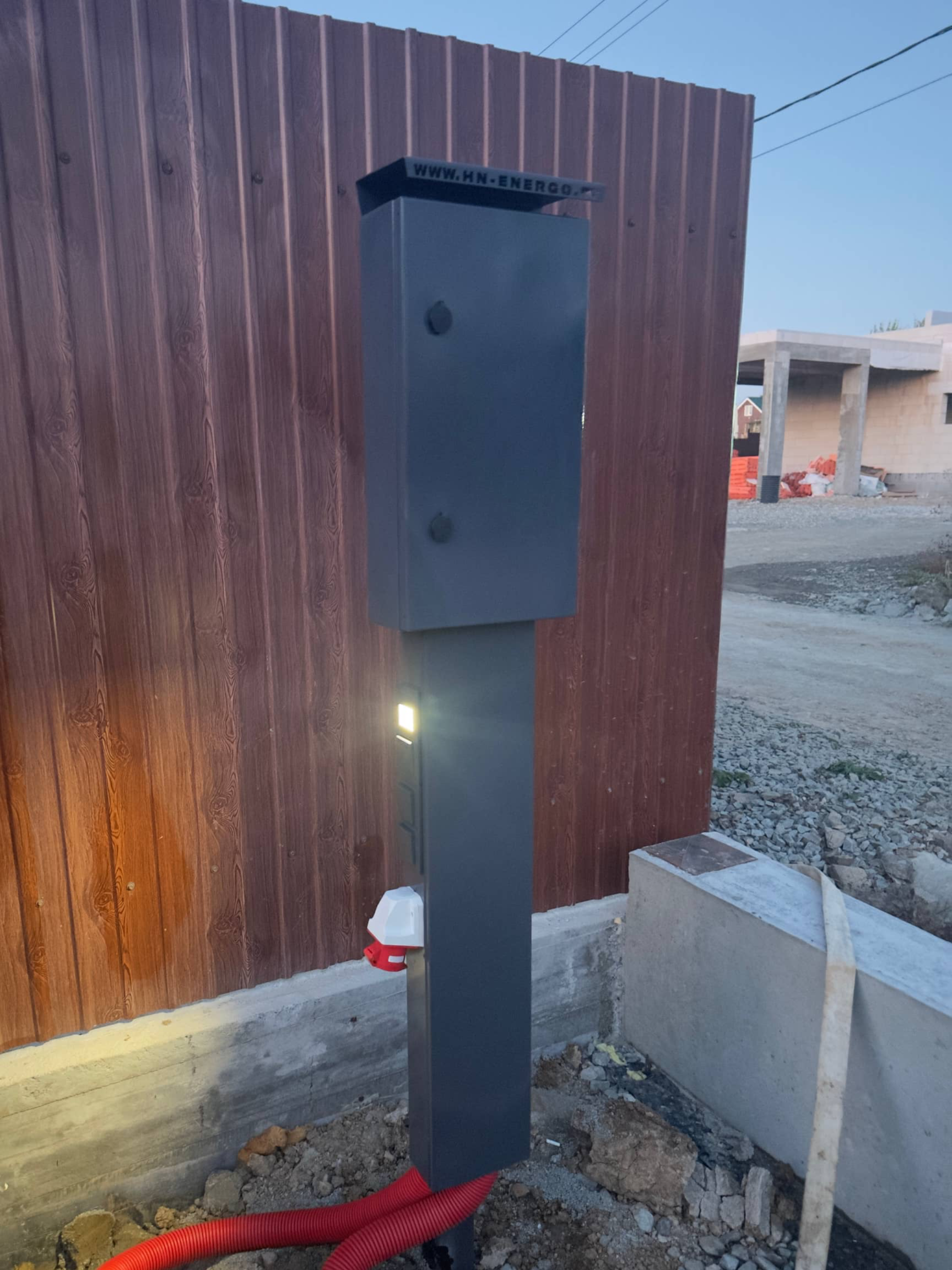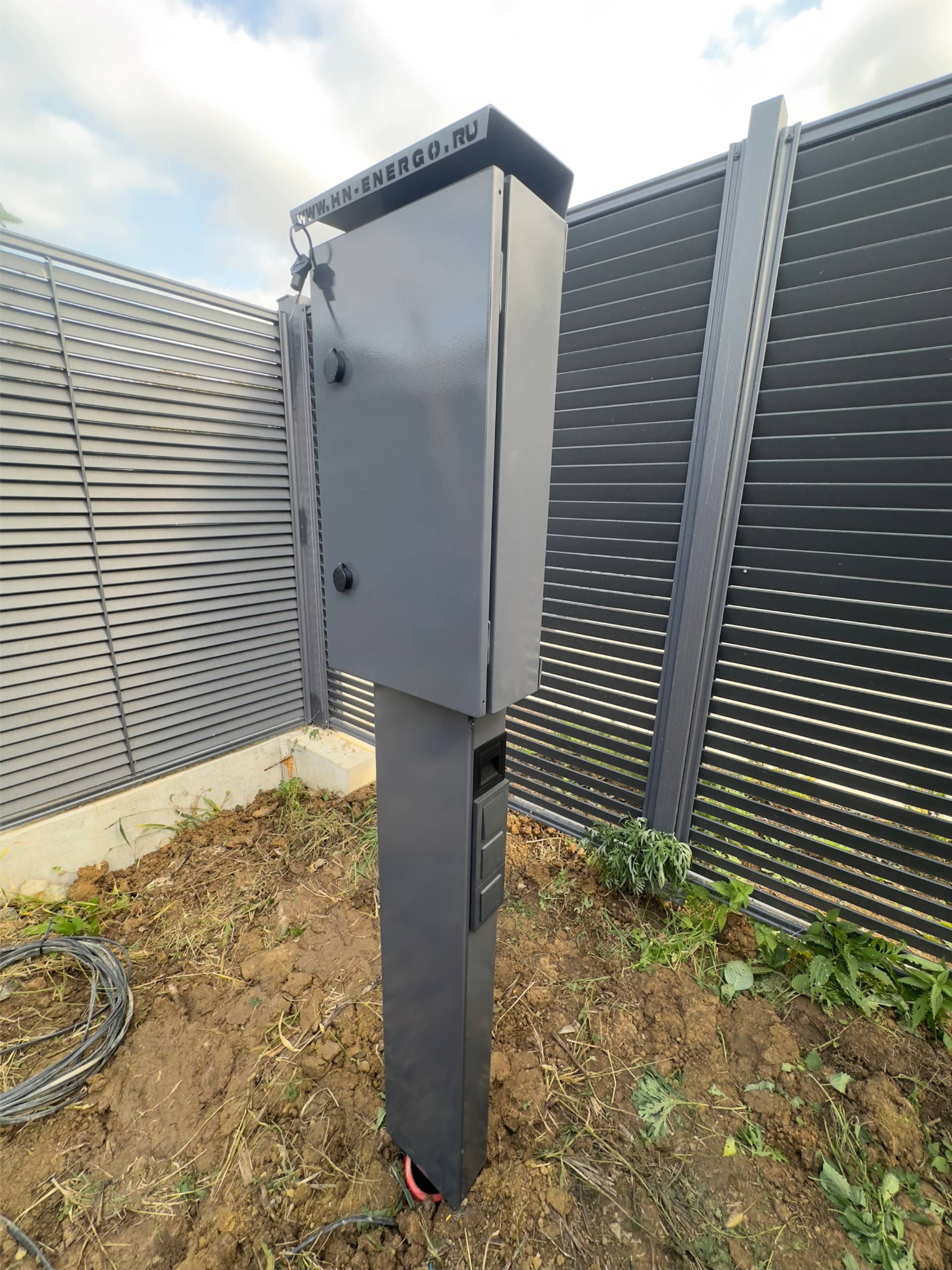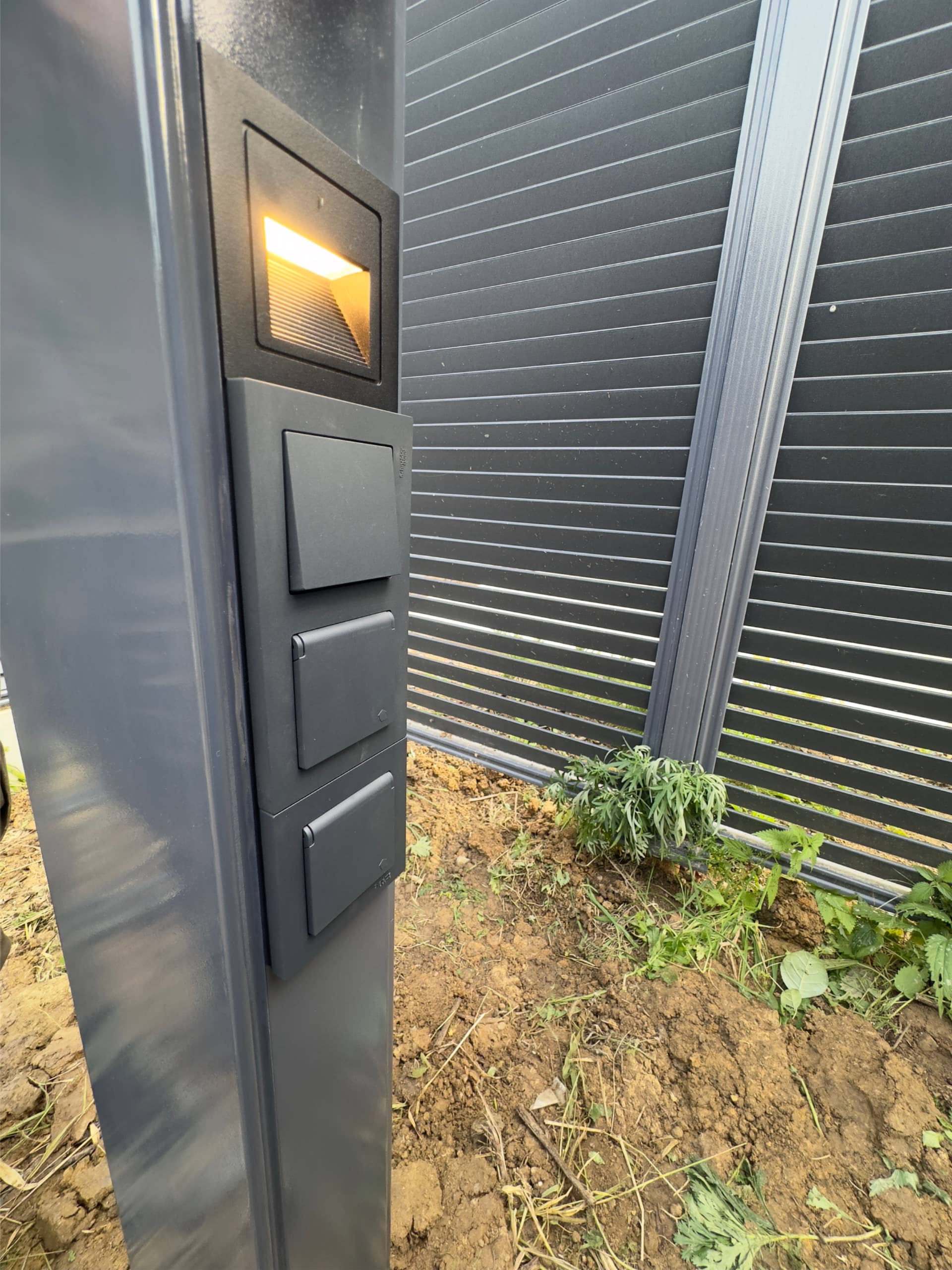 Колонна покрыта двух компонентной краской, на корпусе имеется ландшафтная подсветка с автоматическим управлением , розетки, внутри установлен набор оборудования для подключения будущих построек.